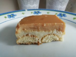 1dl kávét és kb.fél deci tejet egy tálba öntünk,, megforgatjuk benne a piskótákat egyenként és egy tepsibe vagy jénai tálba szórakoztatják.